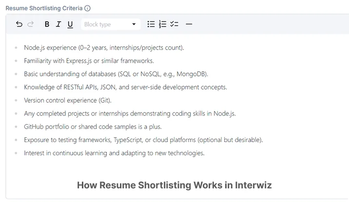 However, evaluation criteria may vary by role, and the Interwiz AI tool keeps that in mind. For example, a project manager requires strong communication and negotiation skills, whereas a backend engineer is evaluated more on problem-solving depth, system design reasoning, and coding proficiency.