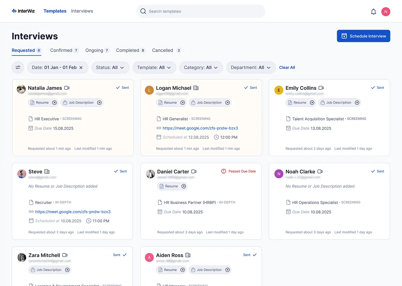 - Hundreds of interviews run effortlessly, even during peak hiring.