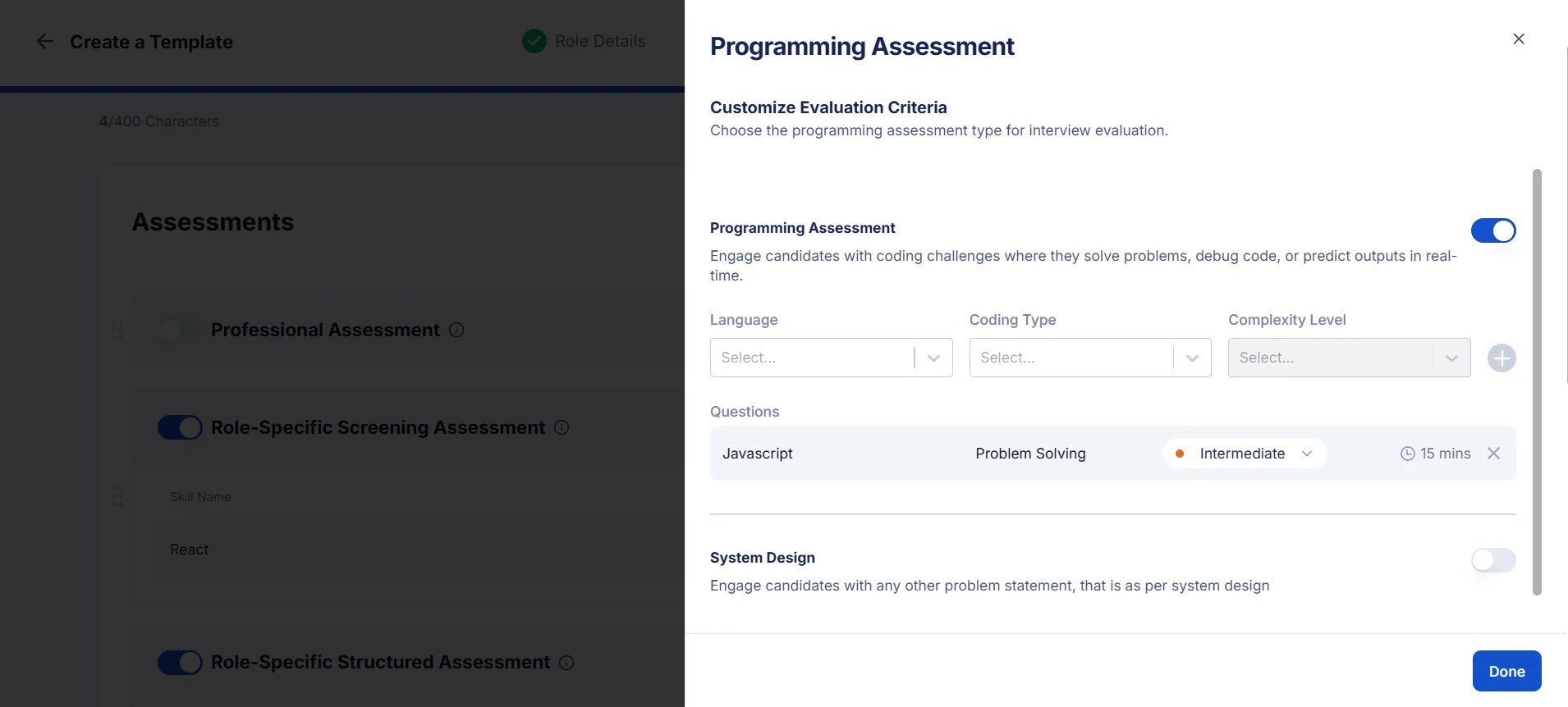 The Programming Assessment helps you evaluate a candidate’s real-time problem-solving and coding skills. These assessments engage candidates with coding challenges where they are asked to: